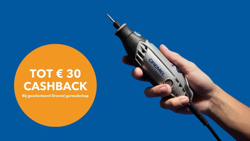 Ontvang tot € 30 cashback bij aankoop van een geselecteerd assortiment Dremel gereedschap.